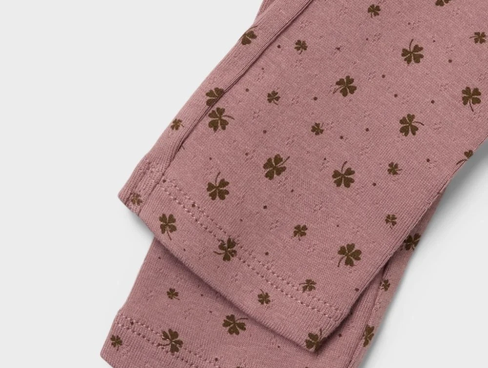 Leggings i farven twilight mauve med kløverprint fra Name It.
