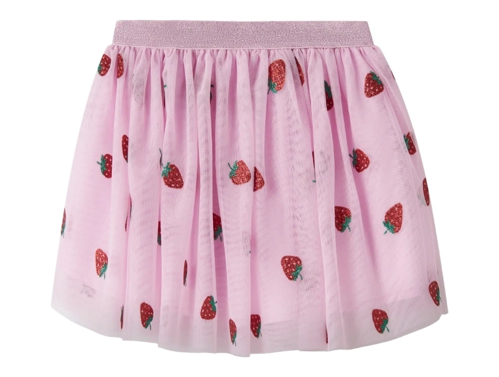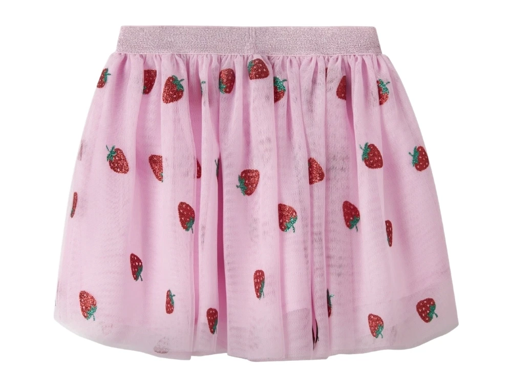 Name It tylskørt i lyserød nuance med jordbærprintName It tyl nederdel pirouette med glimmer jordbærName It tylskørt med elastik i taljen