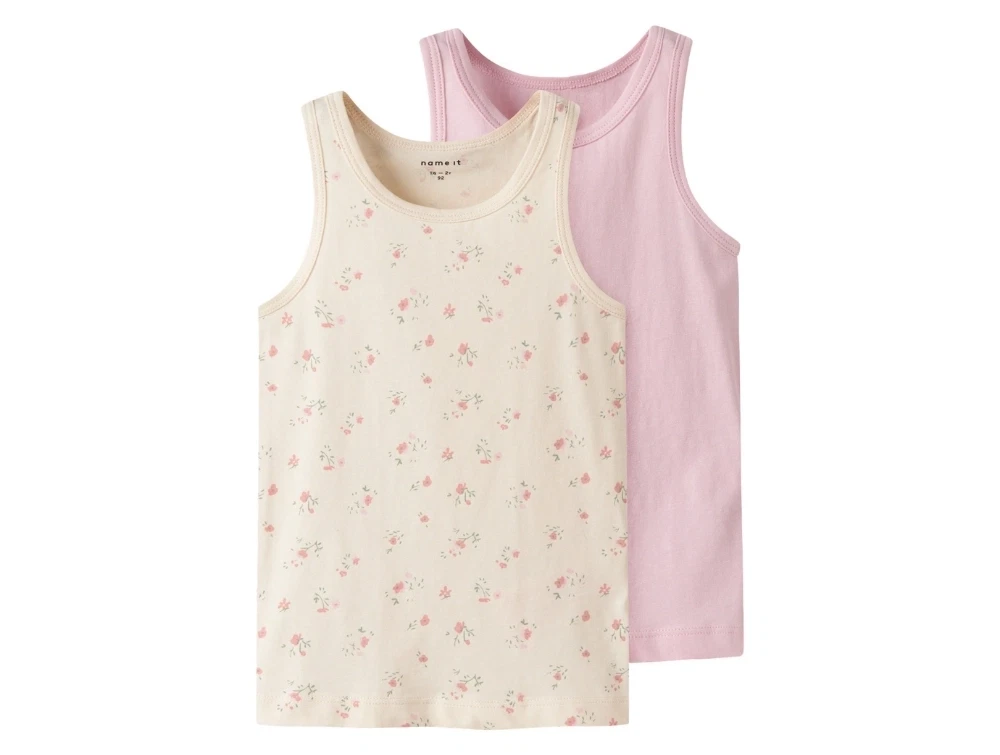 2-pak undertrøjer i lyserøde og råhvide nuancer fra Name It. Den ene undertrøje har et fint blomsterprint, mens den anden er ensfarvet. Begge er fremstillet i blød jerseykvalitet med stræk, som sikrer en behagelig pasform og god bevægelsesfrihed.