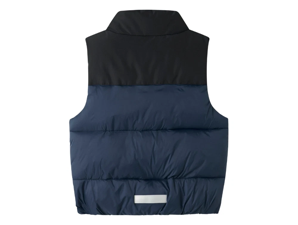 Name It vest blå med refleksdetaljer og polstring set forfraName It vest blå med refleksdetaljer og polstring logo detaljeName It vest blå med refleksdetaljer og polstring set bagfra