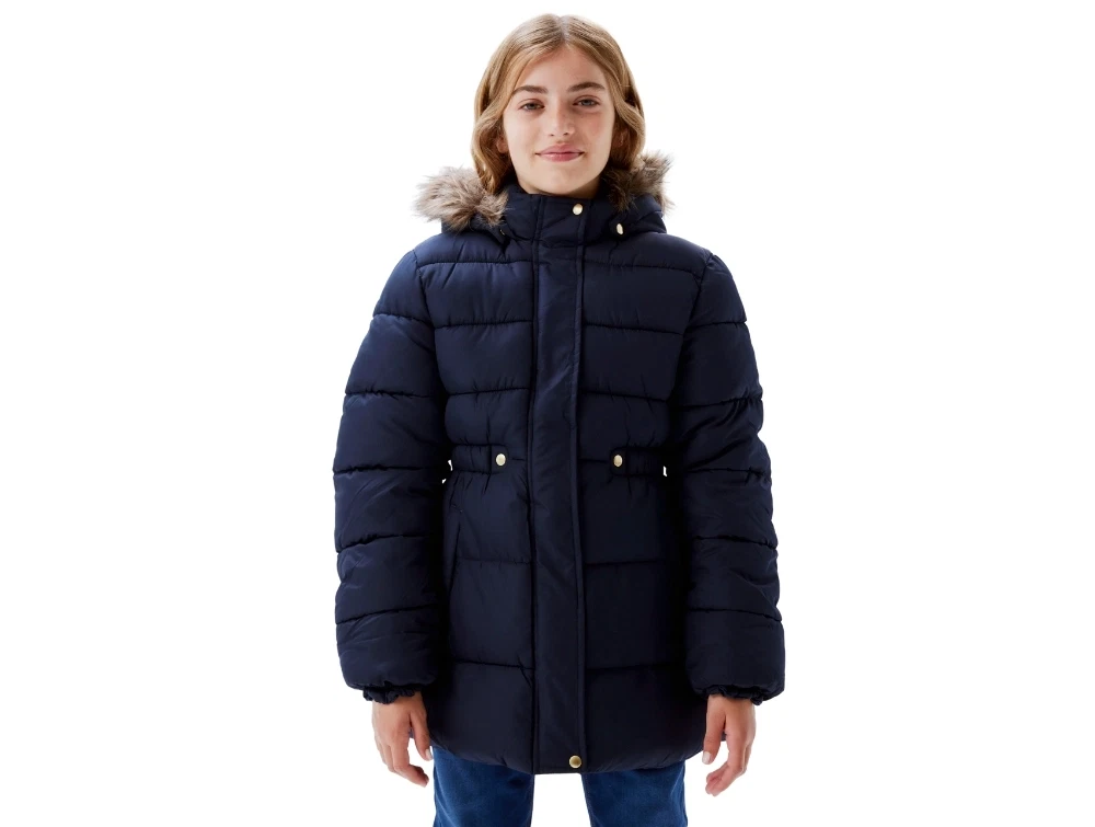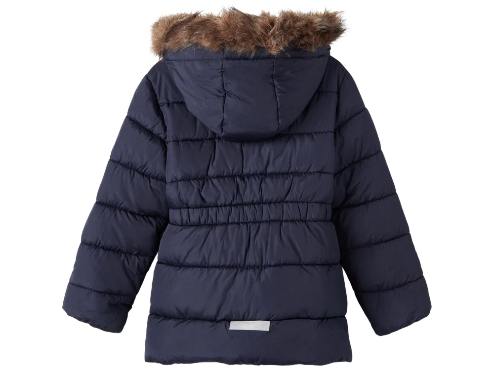 Vinterjakke til piger i farven dark sapphire med aftagelig hætte med trykknapper fra Name It.
