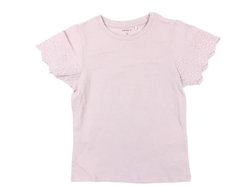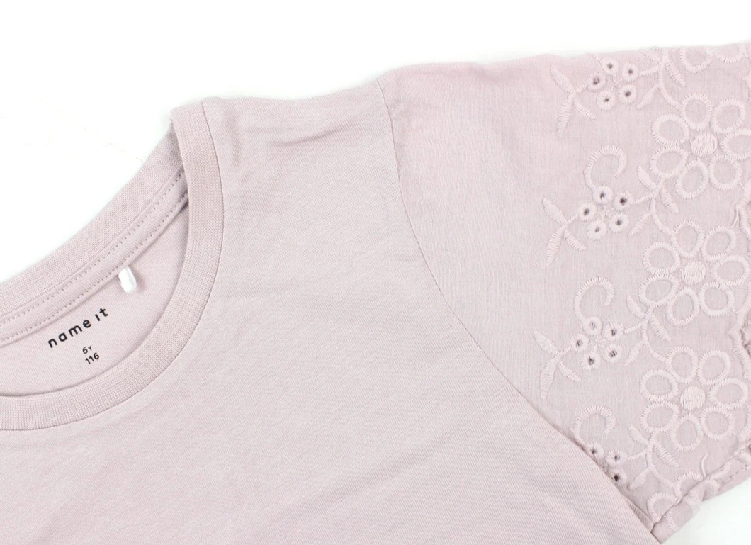 T-shirt top i farven violet ice med fine blondeærmer fra Name It.