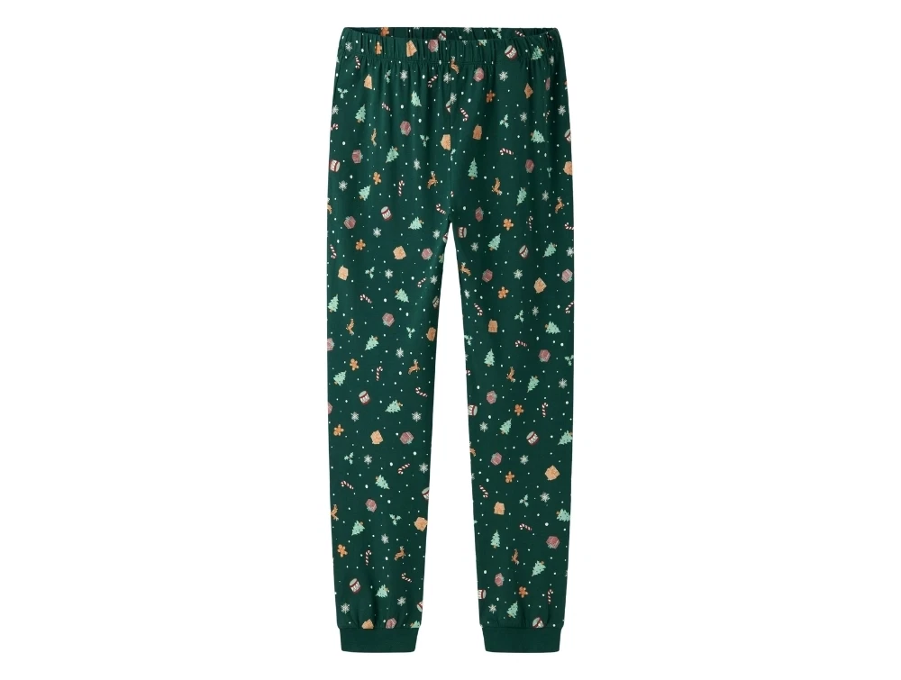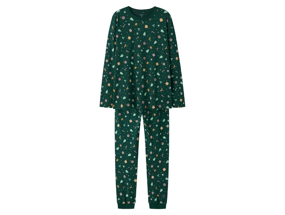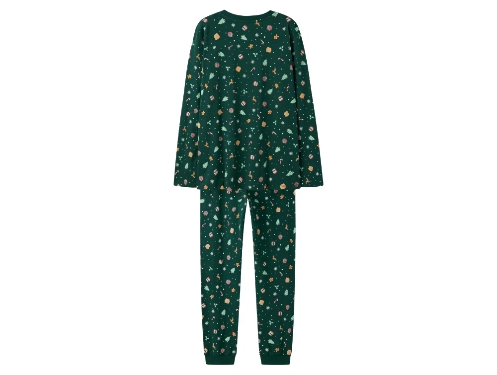 Voksenpyjamas i mørkegrøn nuance (botanical garden) med juleprint fra Name It.