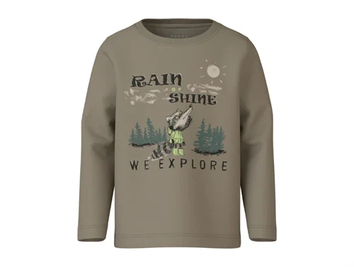 Langærmet top i farven weathered teak med 'we explore' print tema fra Name It.