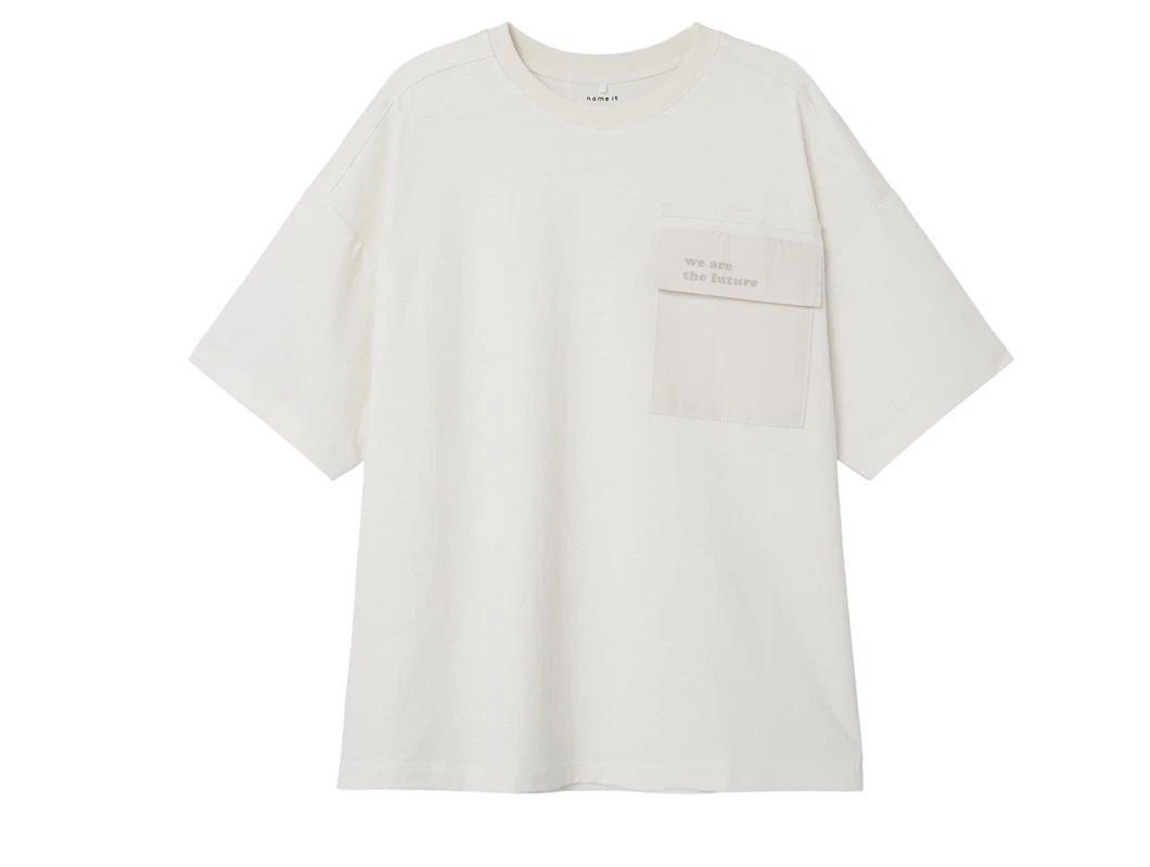 Boxy t-shirt med brystlomme i farven white alyssum fra Name It.