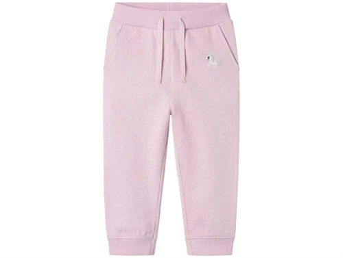 Sweatpants i farven winsome orchid med lille enhjørning-broderi fra Name It.