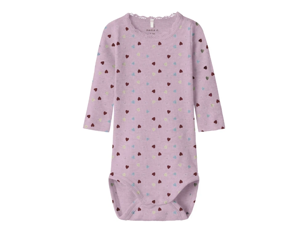 Klassisk rib-body i farven winsome orchid med hjerter fra Name It.