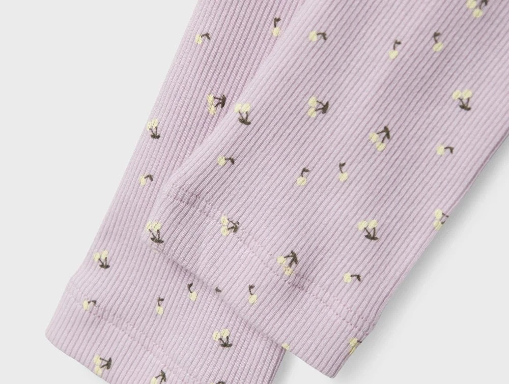 Leggings i farven winsome orchid med småt kirsebærprint fra Name It.