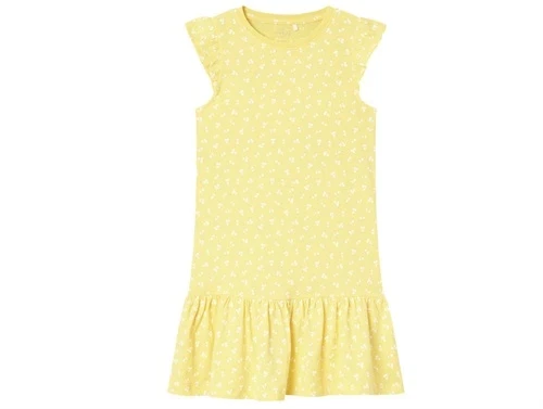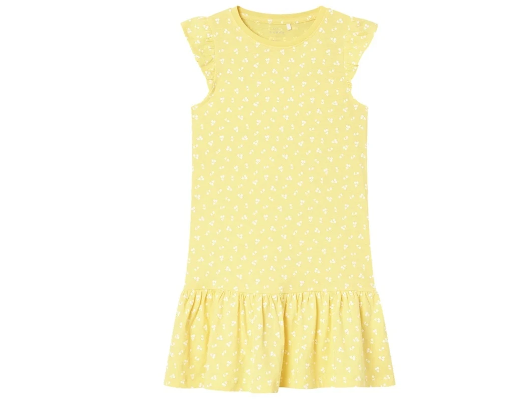 Skøn sommerkjole i farven yarrow med kirsebærprint fra Name It.