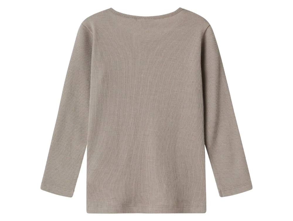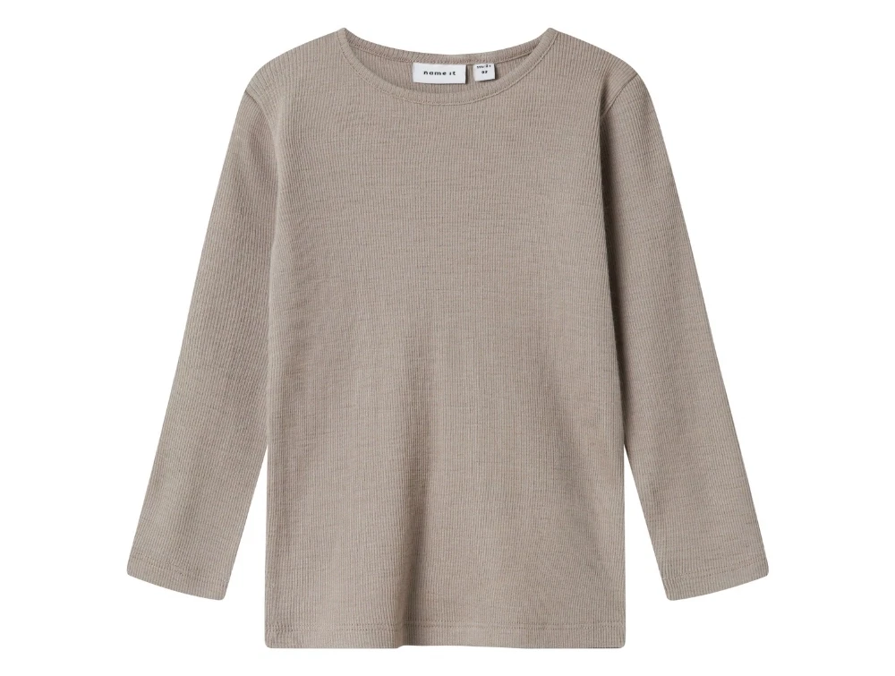 Name It bluse i grå/brun nuance i merinould/silke med lange ærmer