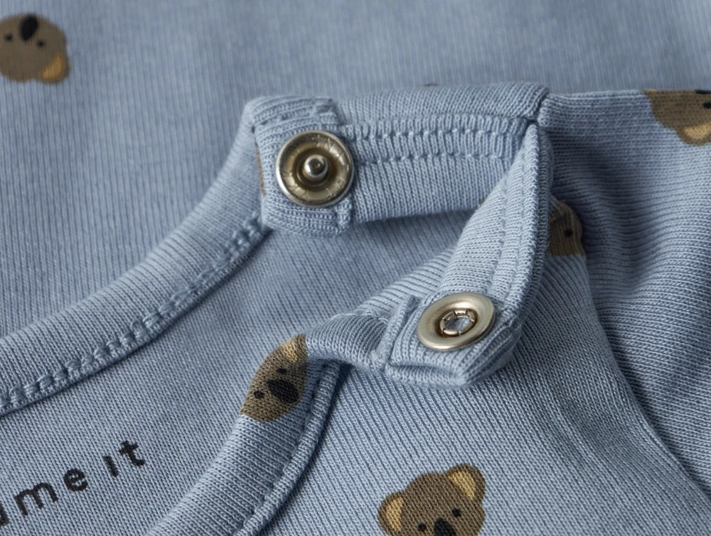 Body i dusty blue nuance fra Name It med sødt bamseprint. En blød og praktisk hverdagsbody, der giver bevægelsesfrihed for de mindste.