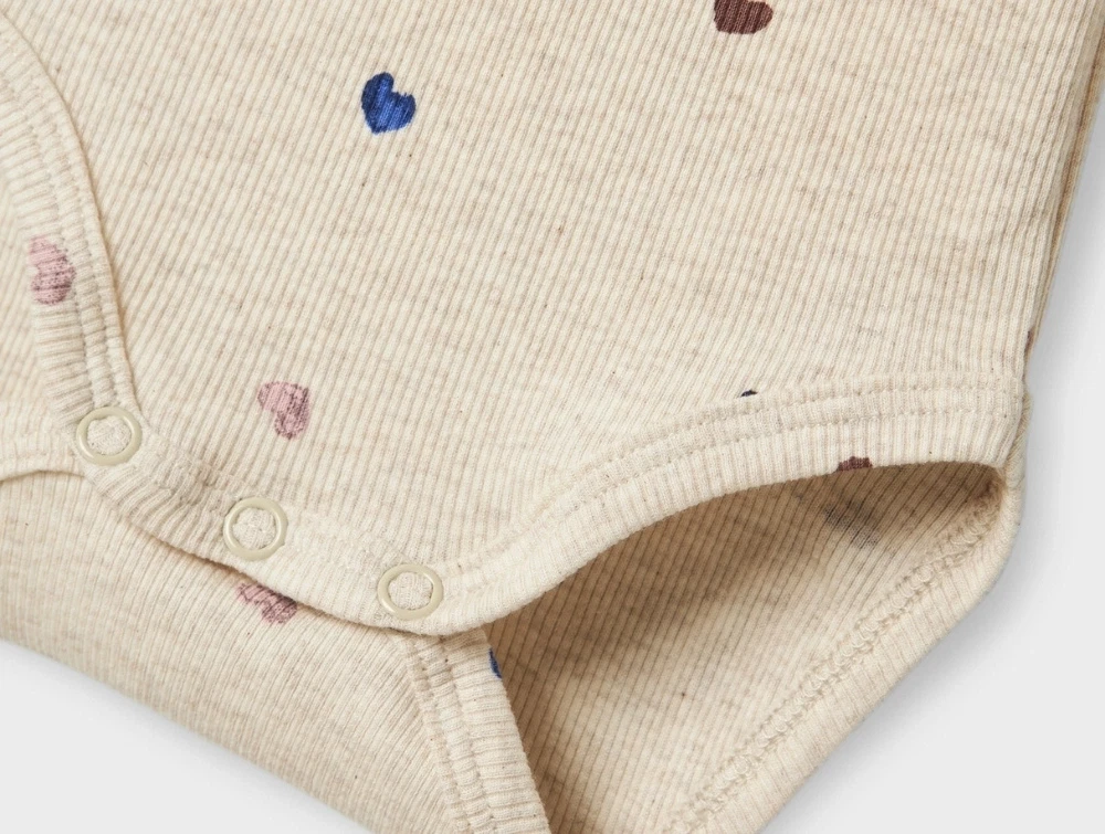 NAME IT BABY body peyote melange med hjerteprint og pufærmer