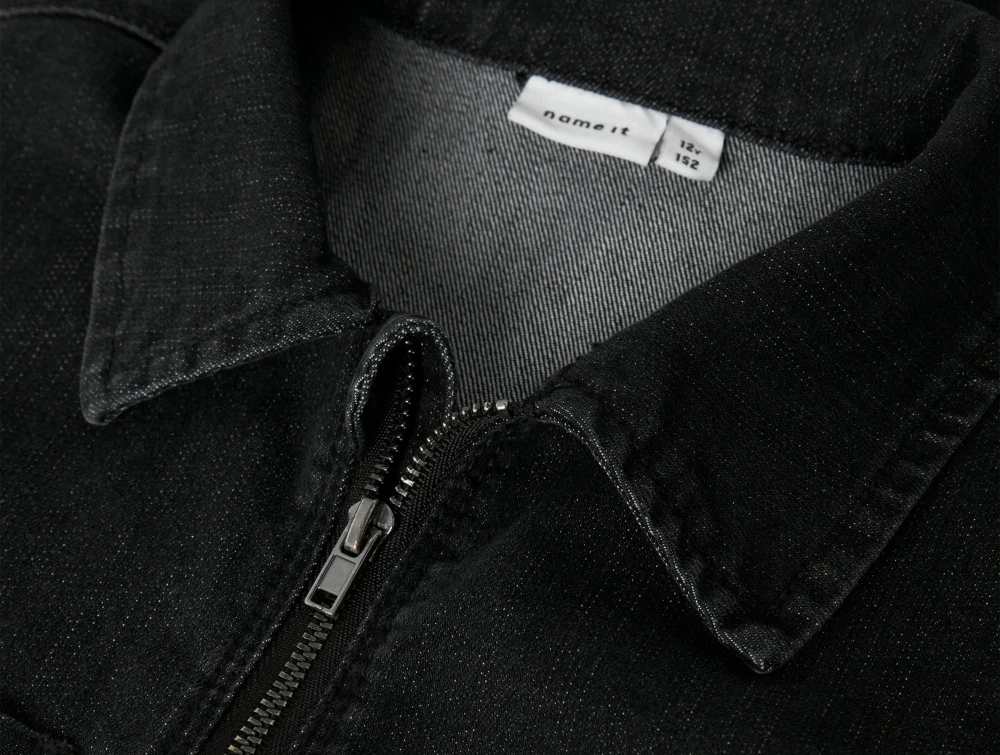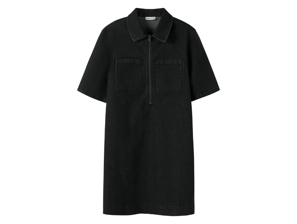 Name It denimkjole i mørkegrå/sort med lynlås og lommer