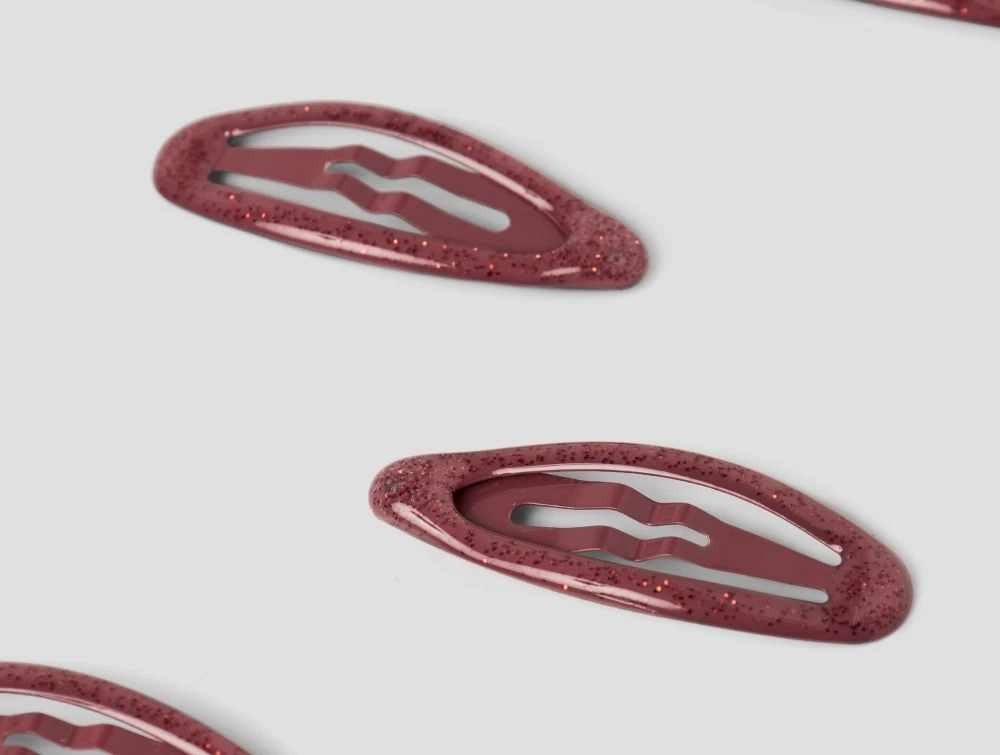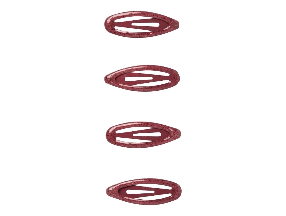 4-pak hårspænder i bordeaux nuance (burgundy) fra Name It med fin glitrende overflade.