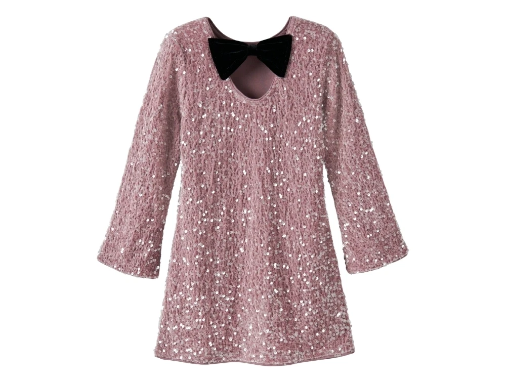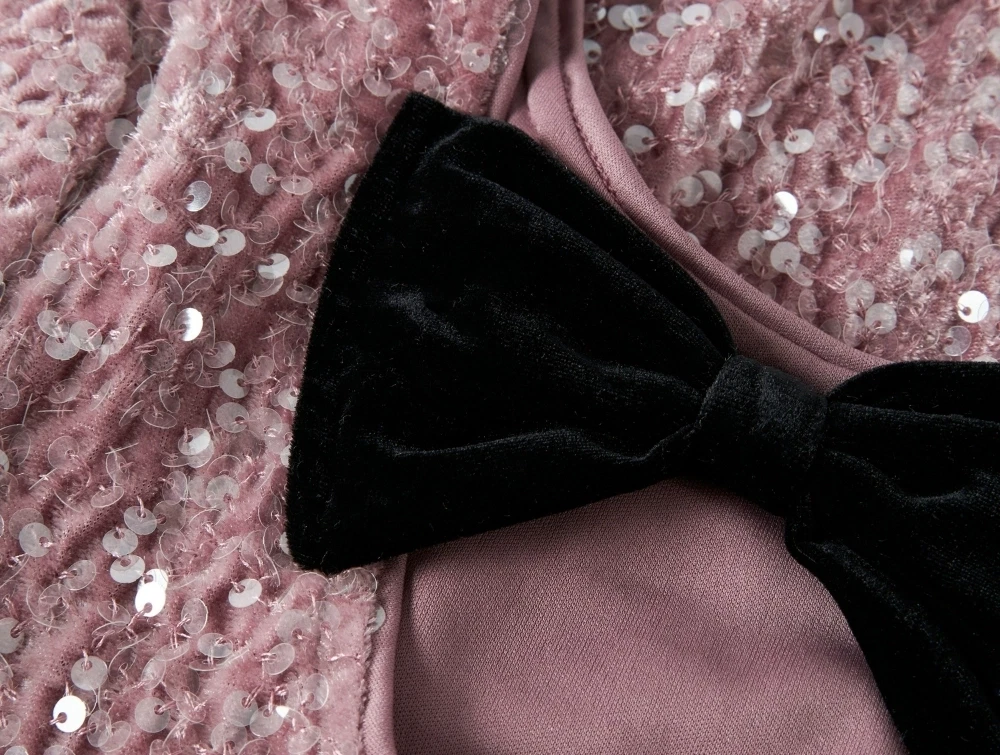 Name It kjole i lyserød med pailletter og sort sløjfe