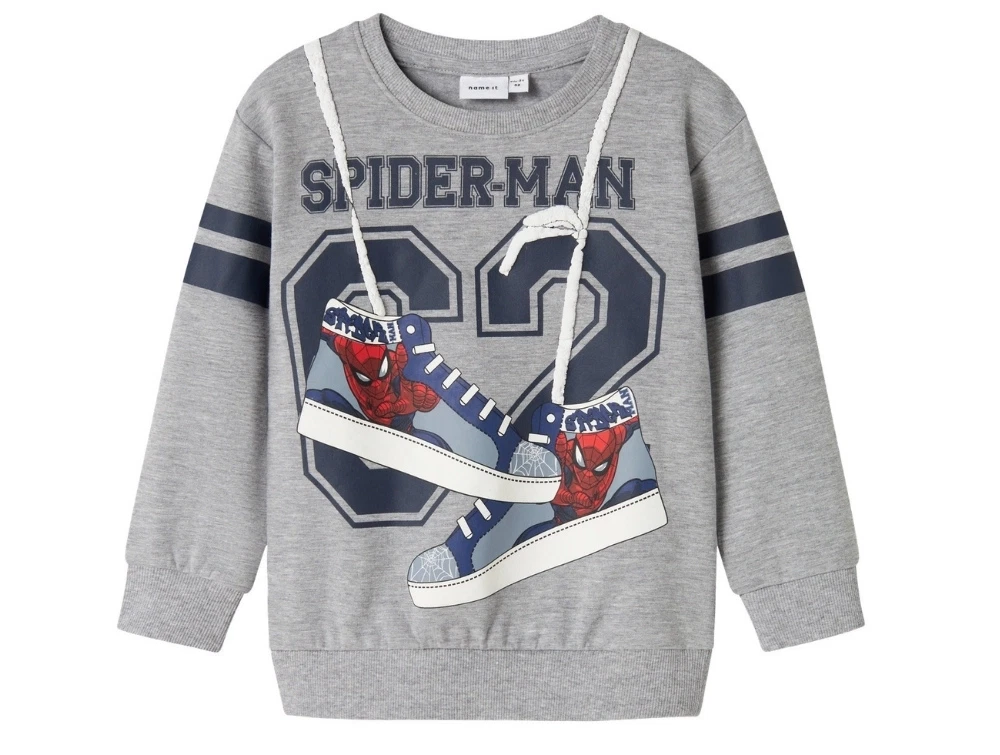 Name It MINI sweatshirt grey melange med Spiderman print og snøredetalje