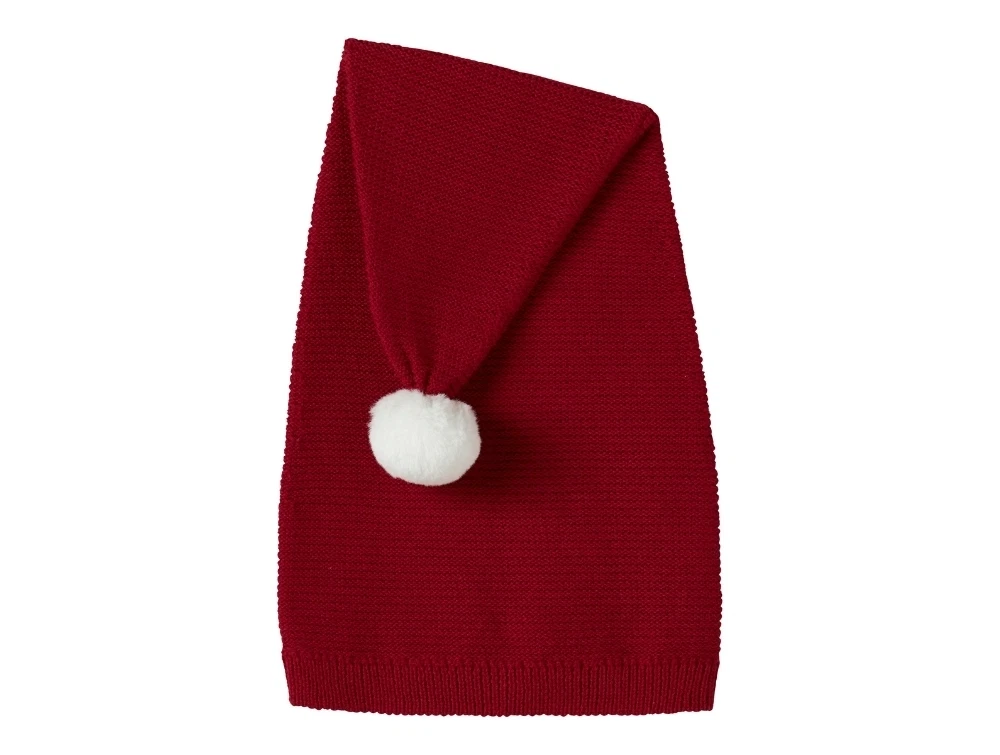 Strikket nissehue i rød nuance (jester red) fra Name It med klassisk hvid kvast.