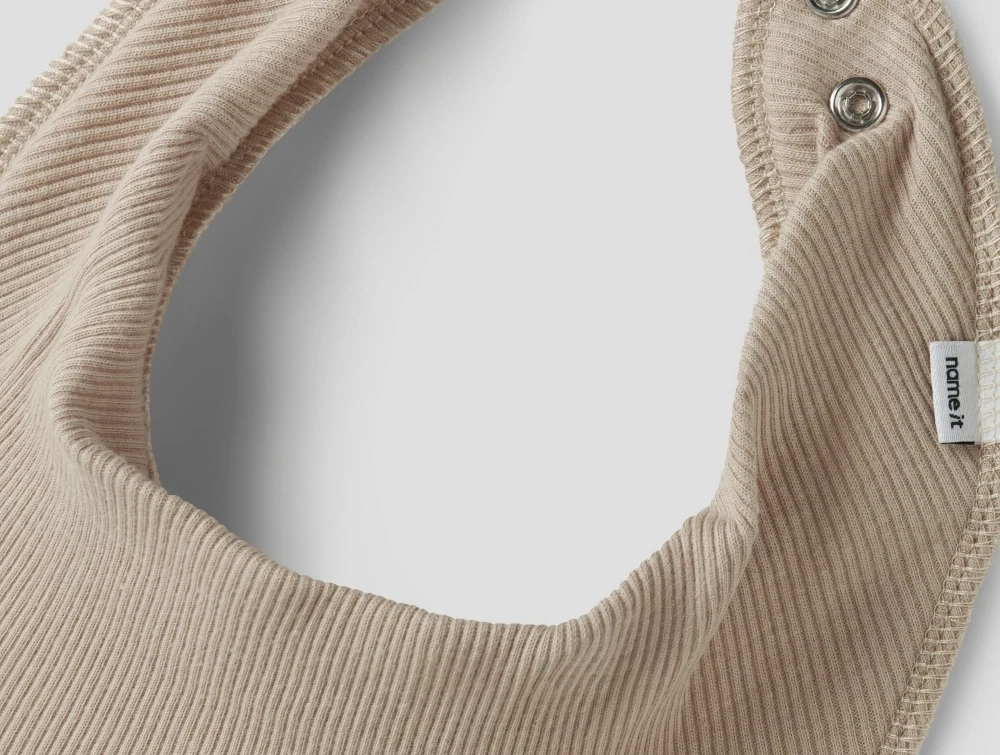 Name It savlesmække i cement, lilac og burgundy rib 3-pakDetalje af cementfarvet savlesmæk i rib fra Name It 3-pak