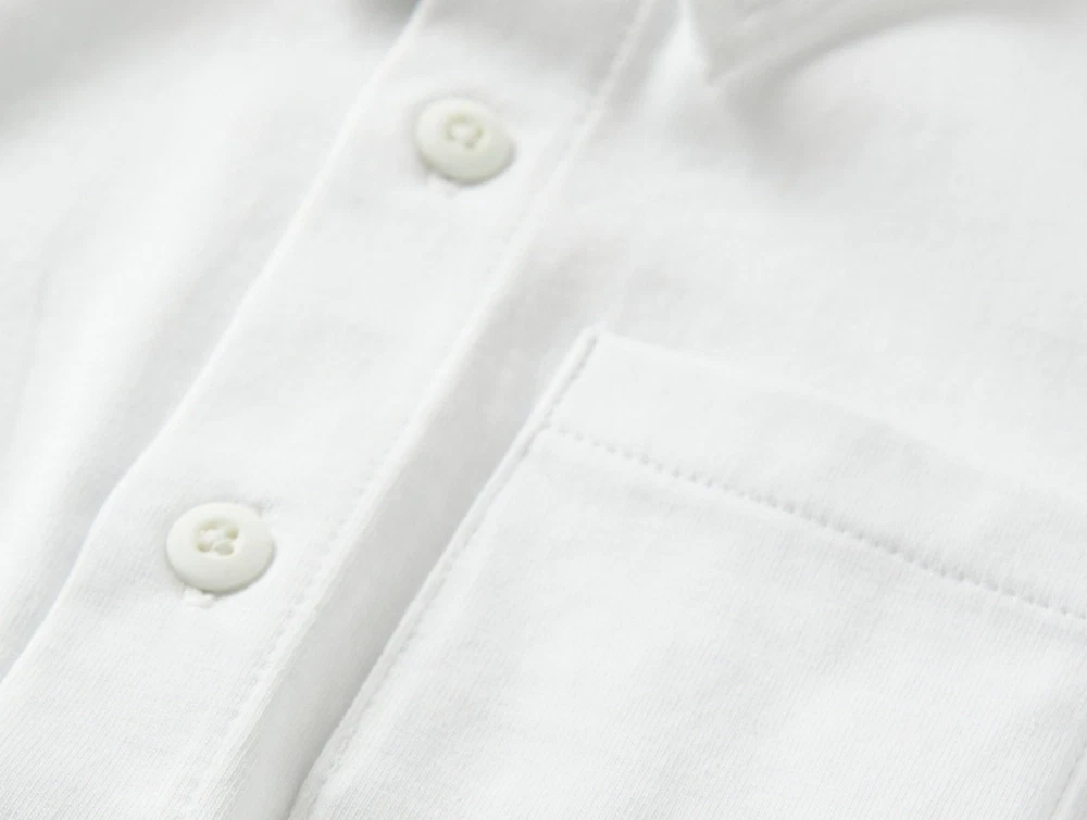 Modellen har klassisk flipkrave, lange ærmer og brystlomme.