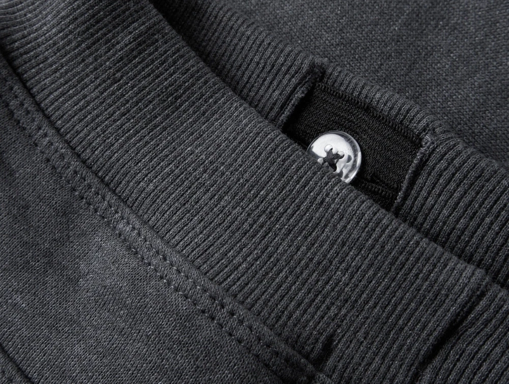 En klassisk og praktisk style med almindelig pasform, ribkanter forneden og to lynlåslommer foran. Dekoreret med et diskret badge på benet.