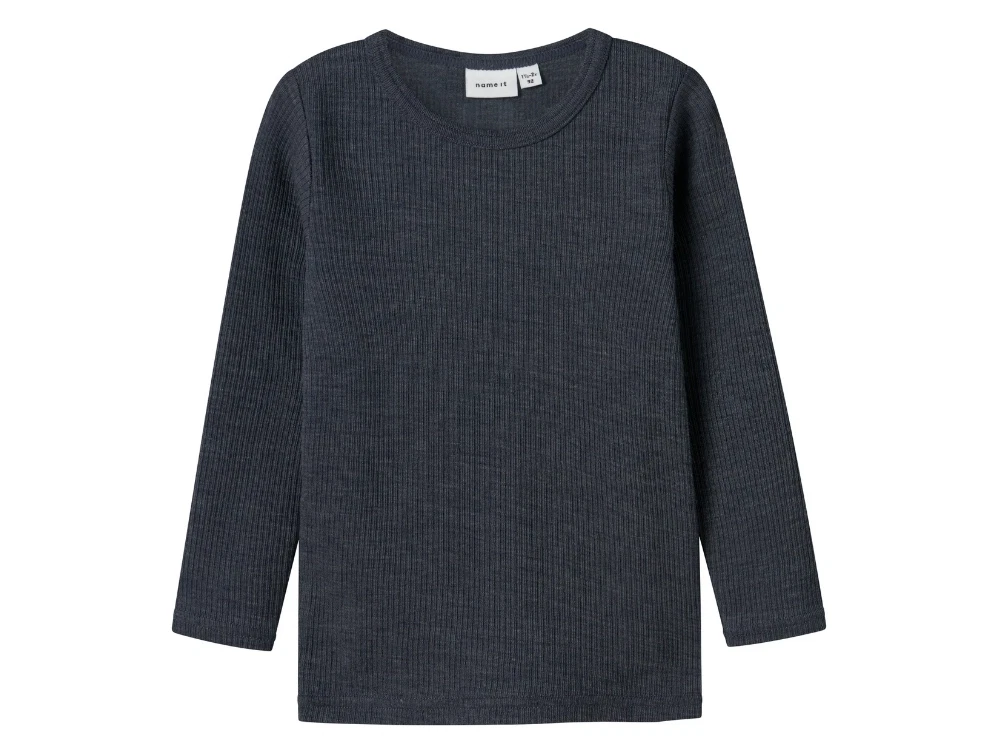 Name It uld bluse ombre blue på barnName It uld bluse ombre blue frontbilledeDetalje af Name It uld bluse ombre blue med ribBagside af Name It uld bluse ombre blue