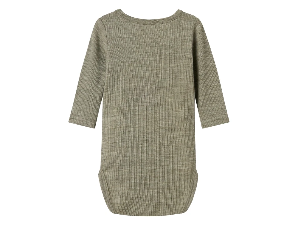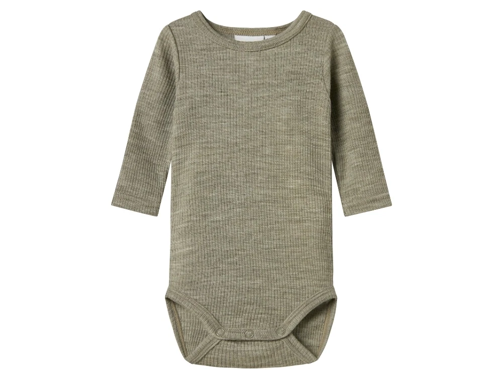 Name It body i støvet grøn merinould med ribstruktur