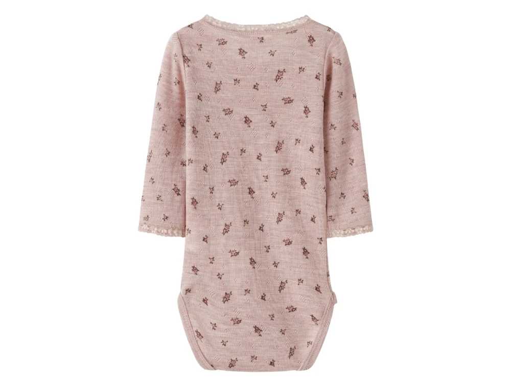 Name It body shadow gray med blomsterprint og blondekant i merinould