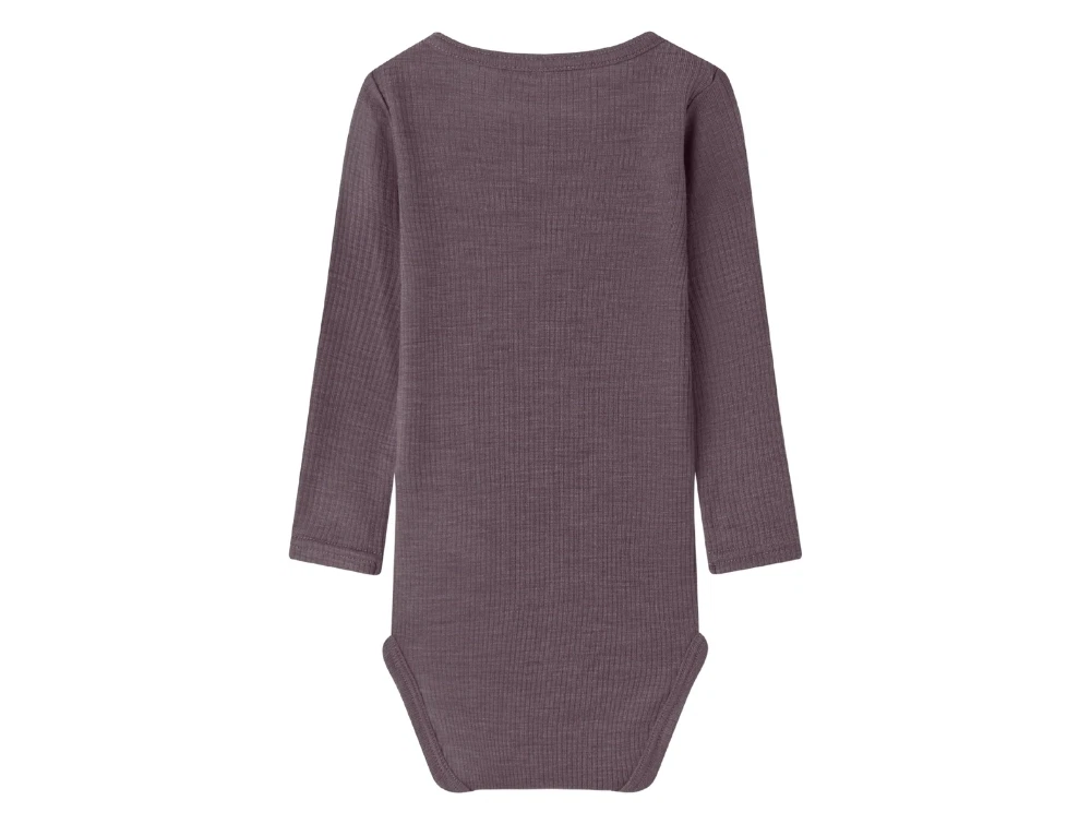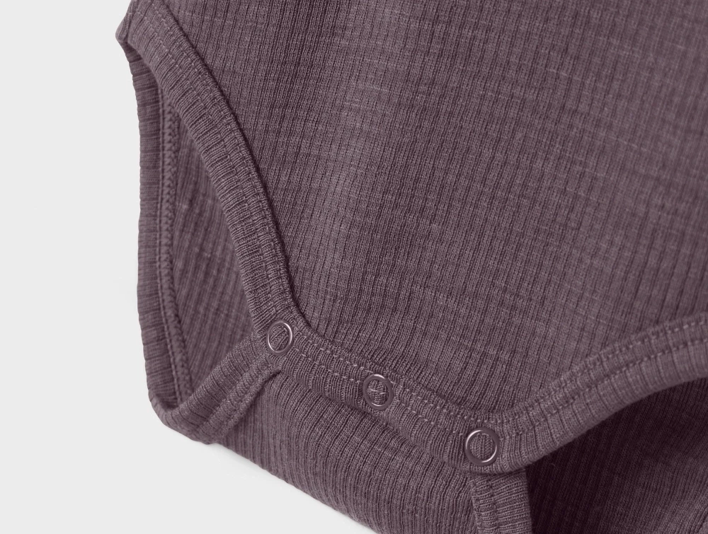 Denne langærmede body er fremstillet i blød merinould med ribstruktur, som giver et moderne og enkelt udtryk. Trykknapper forneden sikrer nem brug i hverdagen.