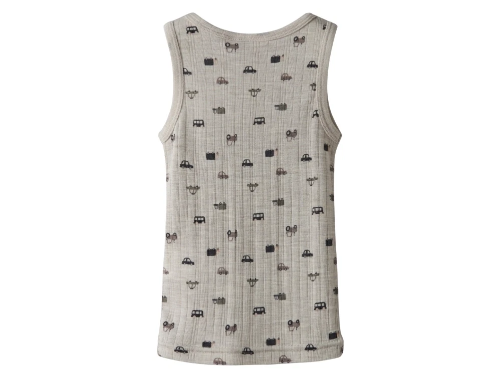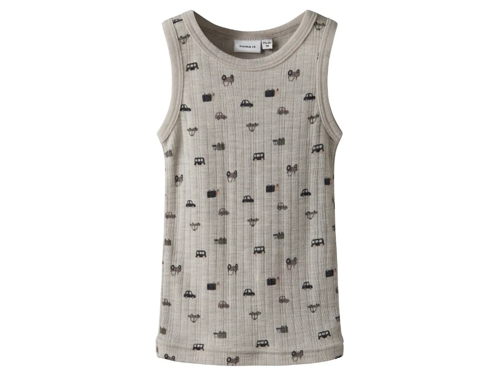 Name It undertrøje i lys grå merinould med ribstruktur og bilprint