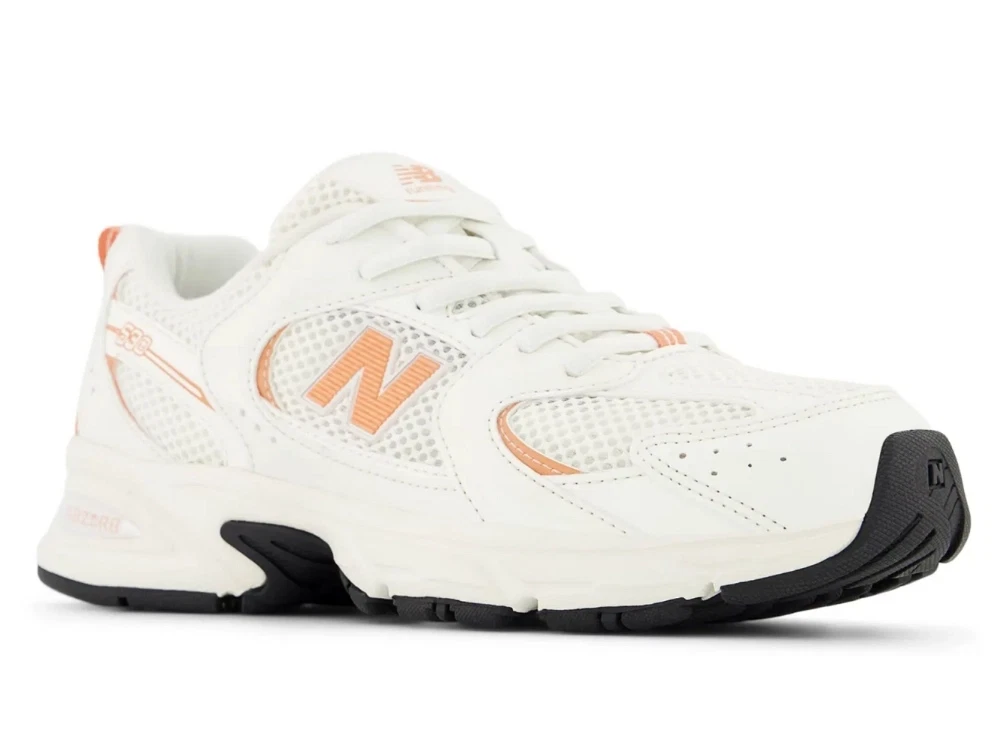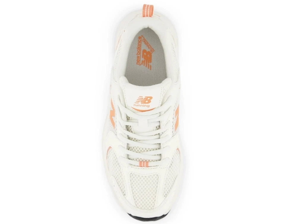 New Balance 530 sneaker råhvid/orange- sneaker set oppefra med orange detaljerNew Balance 530 sneaker råhvid/orange- sneaker set oppefra med orange detaljerNew Balance 530 sneaker råhvid/orange set fra skråt siden