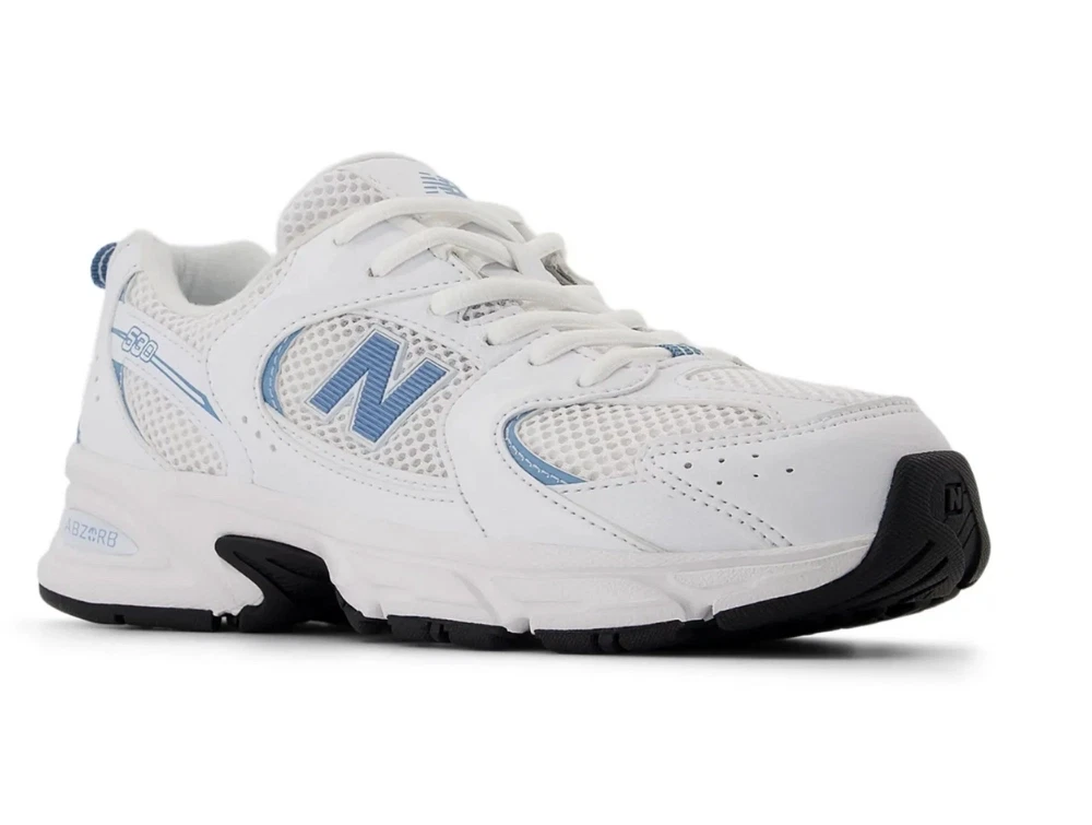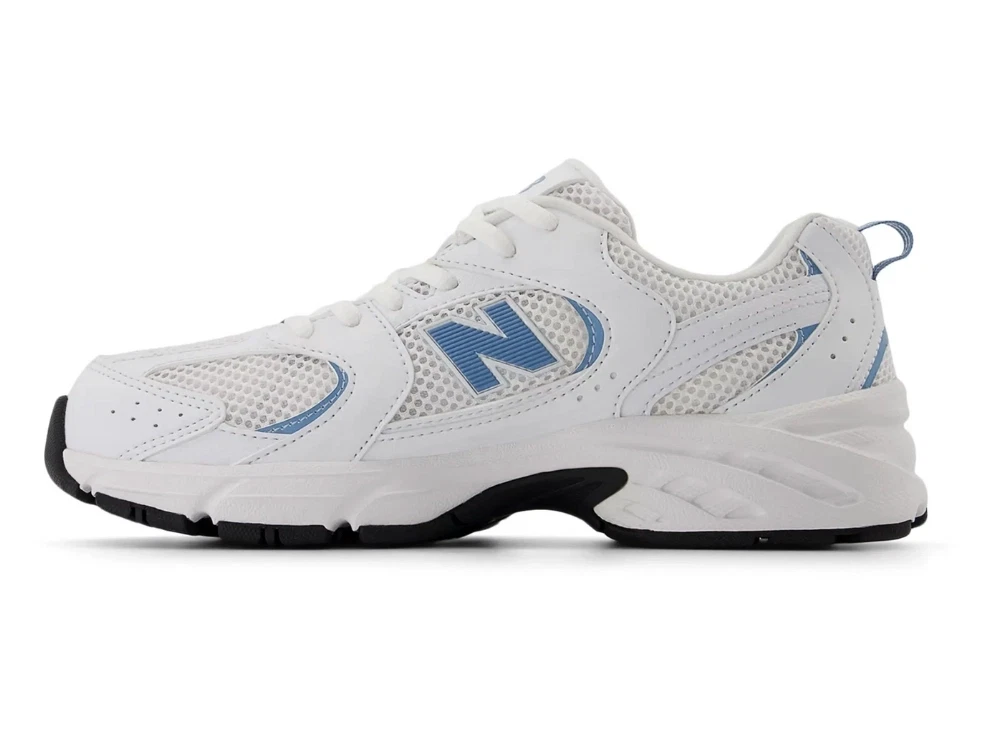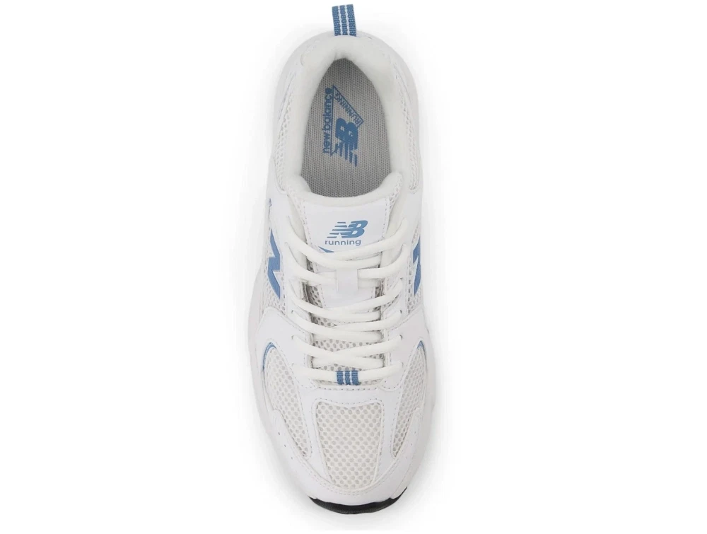 New Balance 530 sneaker i white/still water med meshNew Balance 530 sneaker i white/still water med mesh- sålNew Balance 530 sneaker i white/still water med mesh- set oppefraNew Balance 530 sneaker i white/still water med mesh- set skråt fra siden