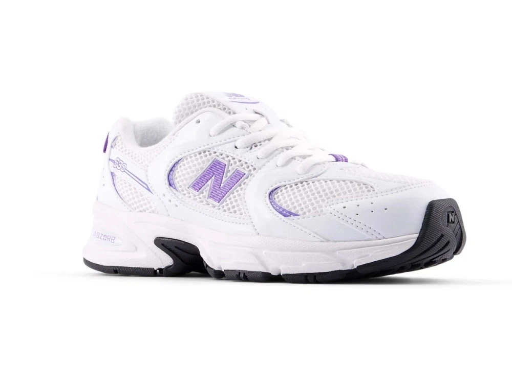 New Balance 530 sneaker i white/violet crush med meshNew Balance 530 sneaker i white/violet crush med mesh - set fra siden skråtNew Balance 530 sneaker i white/violet crush med mesh - set oppefraNew Balance 530 sneaker i white/violet crush med mesh- set fra sålen