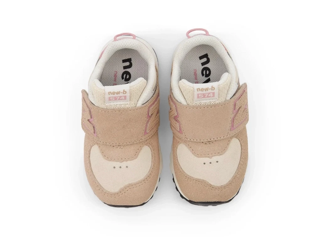 Sneaker i beige og rosa nuance (flat taupe/pink taffy) fra New Balance med praktisk velcrolukning.