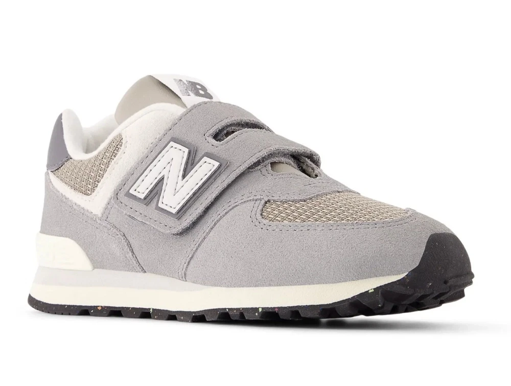 Sneakers i grå og beige nuance (slate gray/castlerock) fra New Balance med velcrolukning og klassisk 574-design.