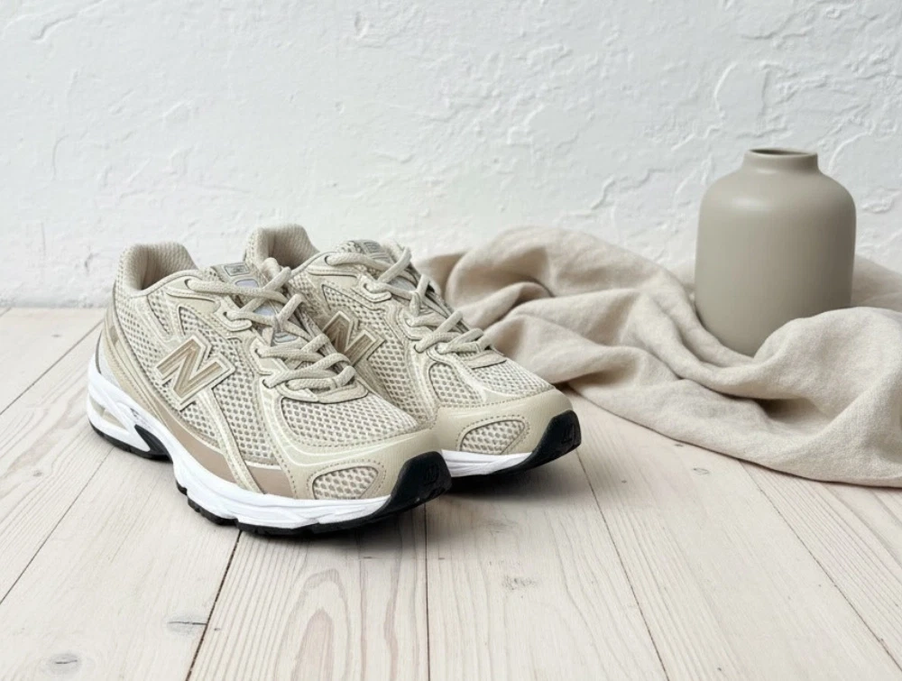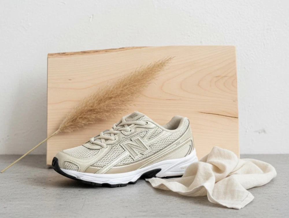New Balance 740 sneaker i beige med elastiksnøre og løbeinspireret design