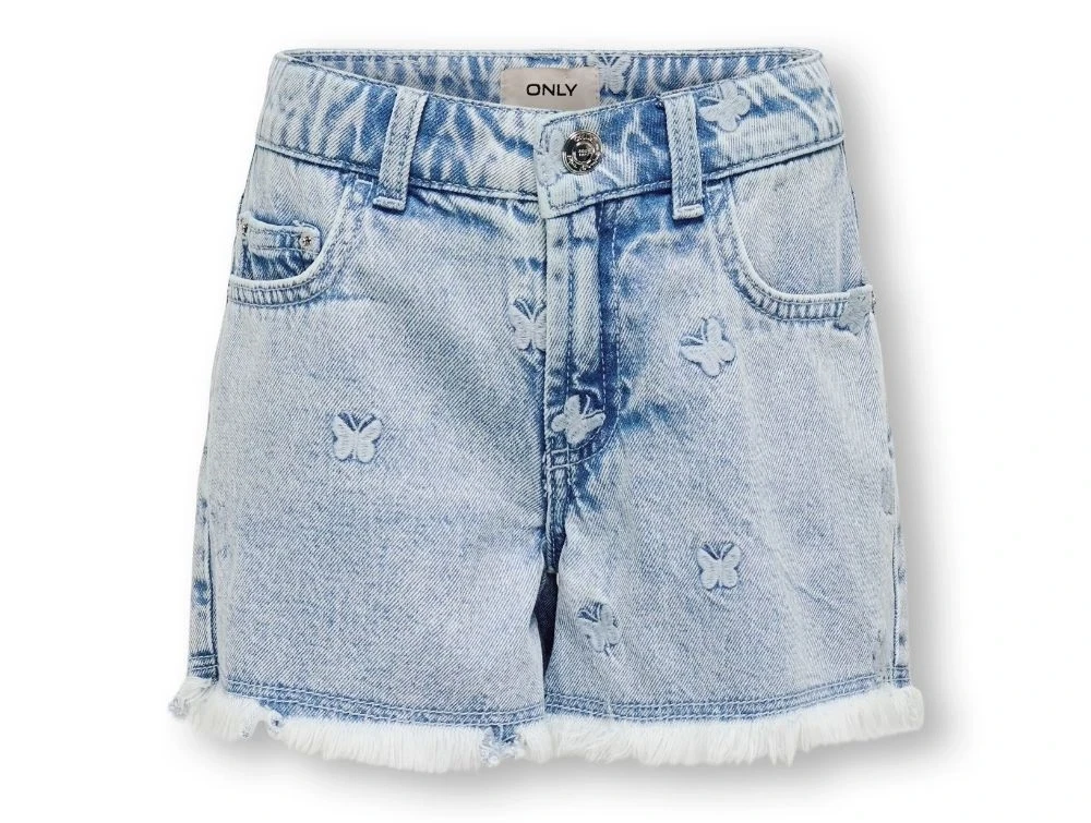 ONLY denimshorts light blue denim butterfly med frynsekant