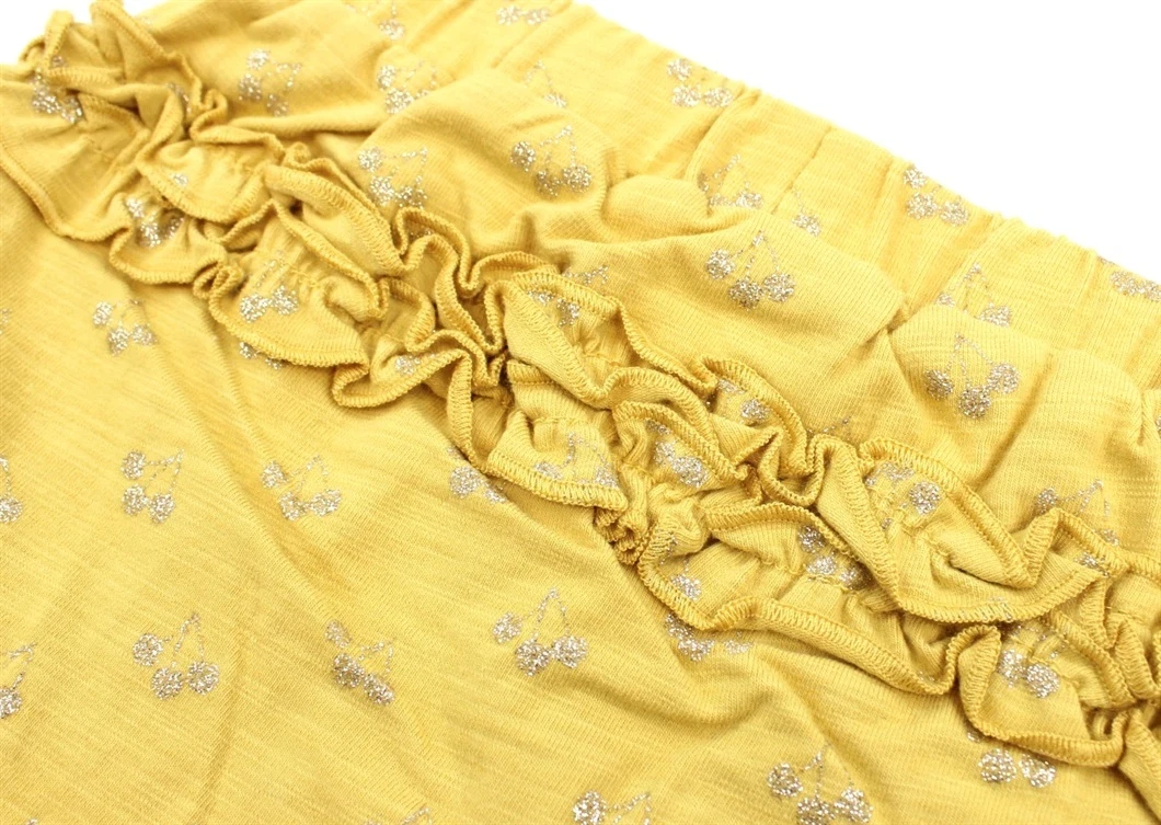 Gule bloomers med guldfarvede kirsebær og flæser fra Petit by Sofie Schnoor.