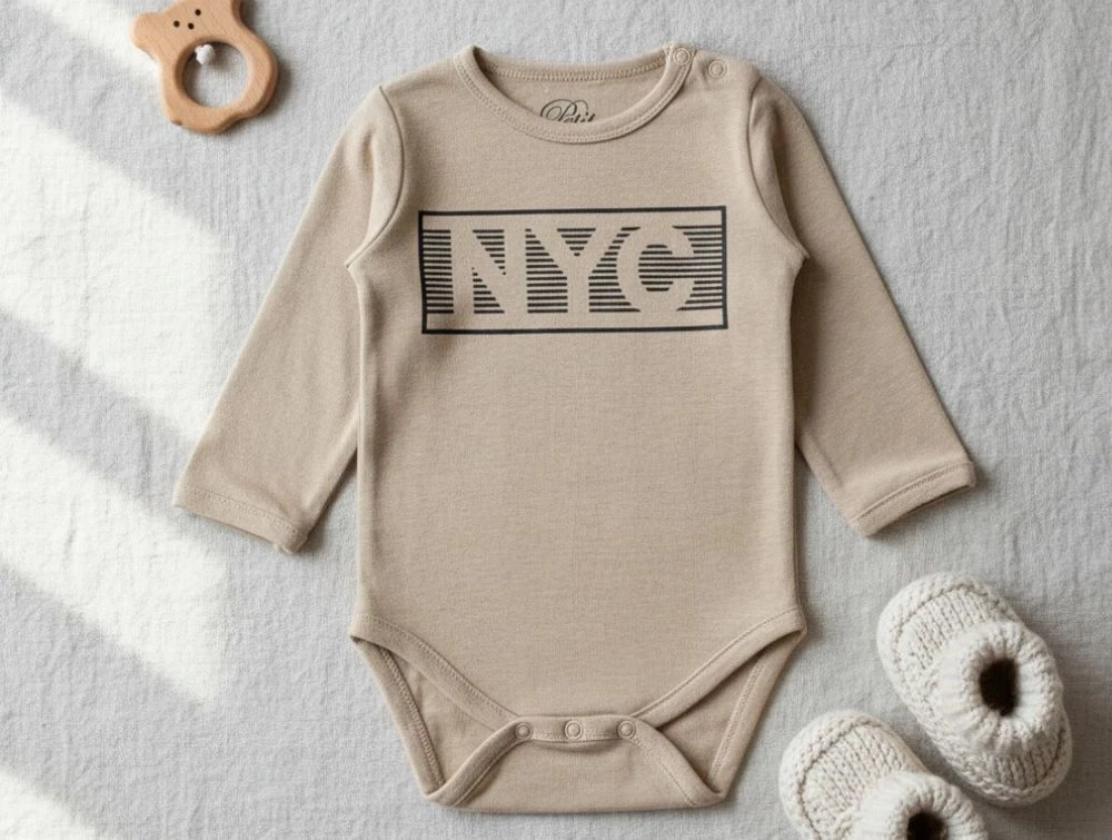 Body i farven camel melange med NYC print fra Petit by Sofie Schnoor.