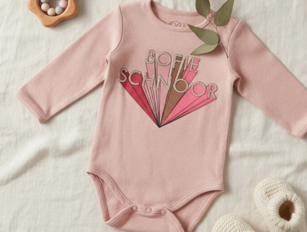 Rosafarvet body med print fra Petit by Sofie Schnoor.
