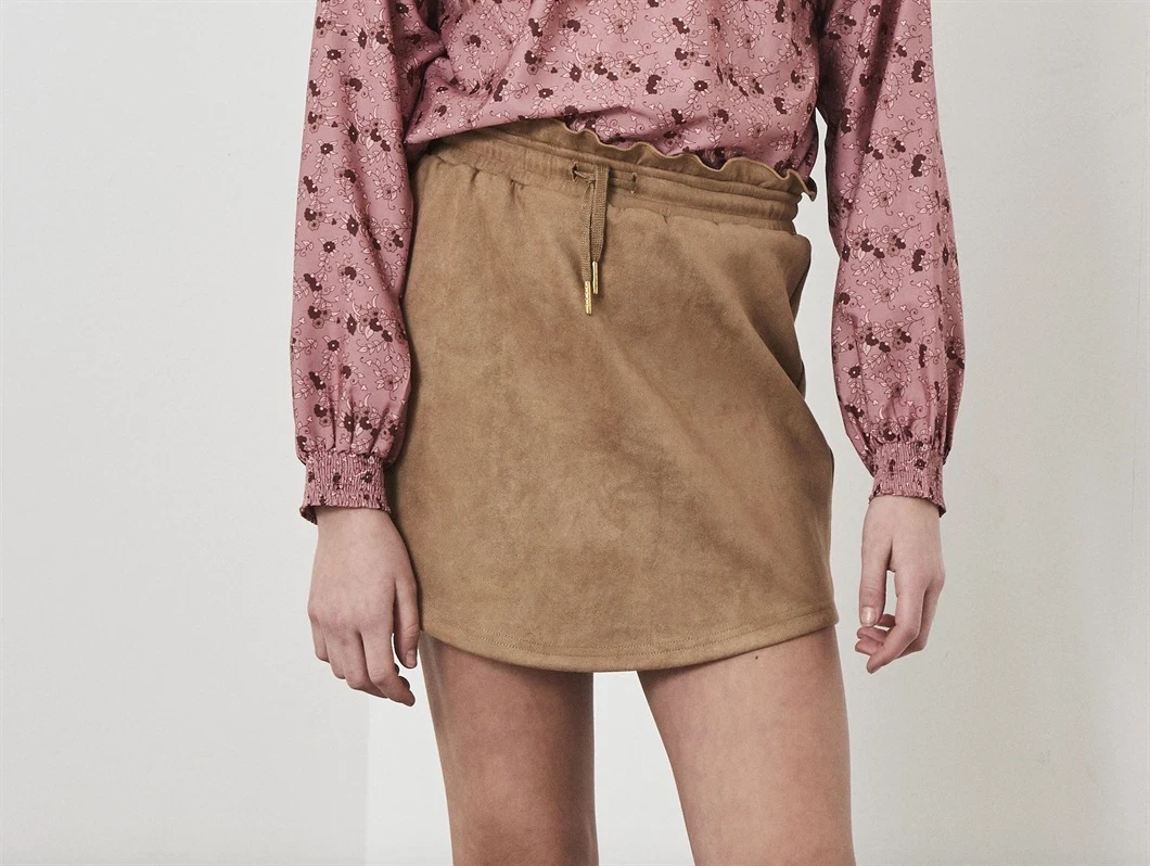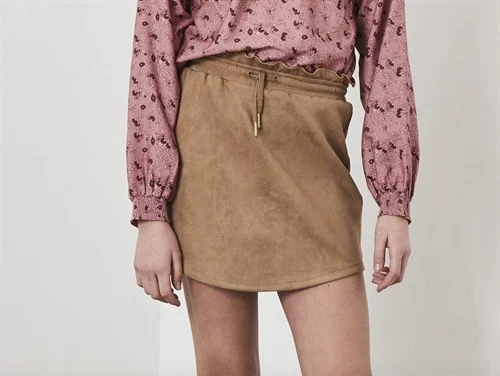Beigebrun nederdel med ruskind-look fra Petit by Sofie Schnoor.