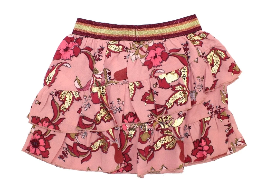 Rosa nederdel med blomsterprint og glimmerelastik fra Petit by Sofie Schnoor.