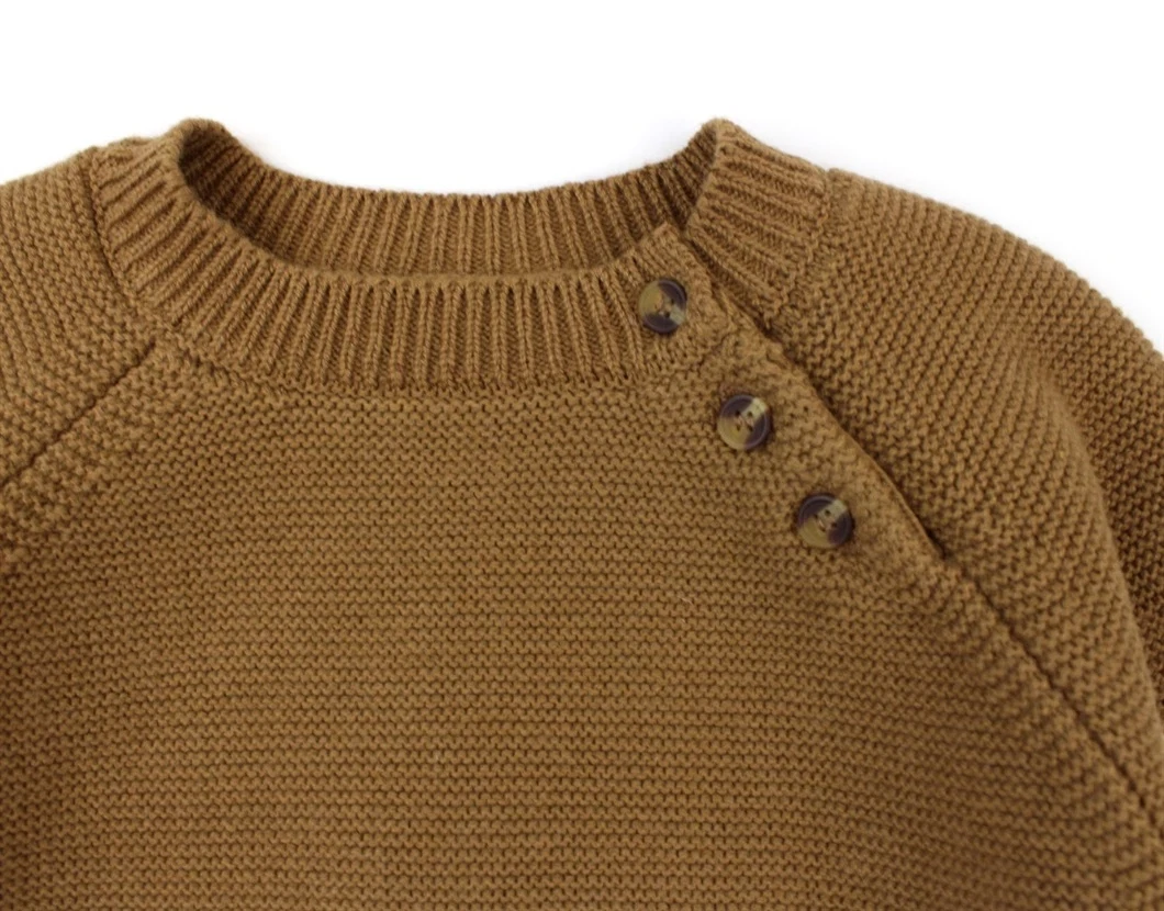 Striktrøje i farven mustard fra Petit by Sofie Schnoor.
