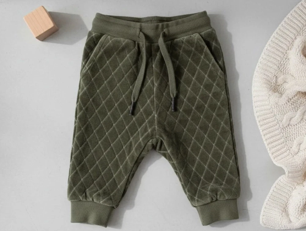 Mørkegrønne velour sweatbukser fra Petit by Sofie Schnoor.