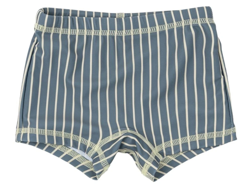 Badebukser i blå mirage med råhvide (blue mirage/off white) striber fra Petit Piao.