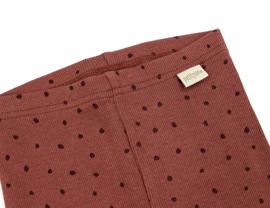 Legging i farven berry dust med mørkerøde prikker fra Petit Piao.