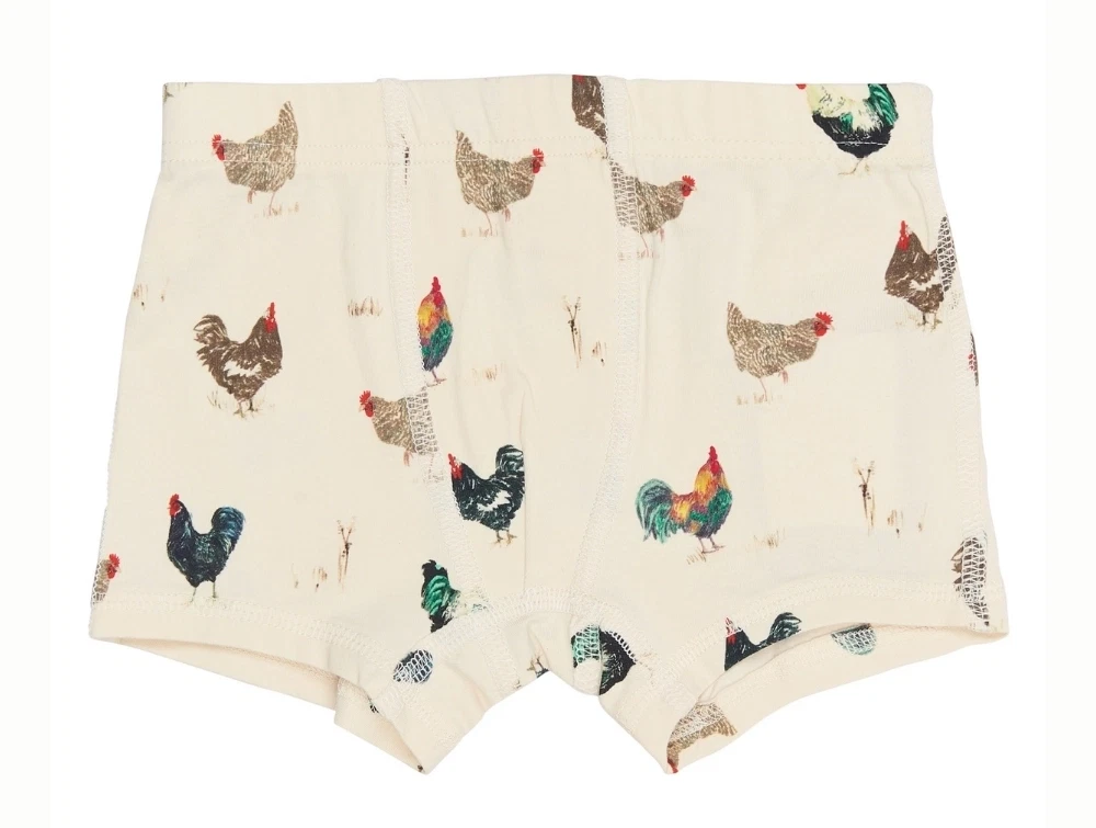 2-pak boxershorts (Eggnog Rooster) fra Petit Piao i en blød og strækbar jerseykvalitet af GOTS-certificeret økologisk bomuld.