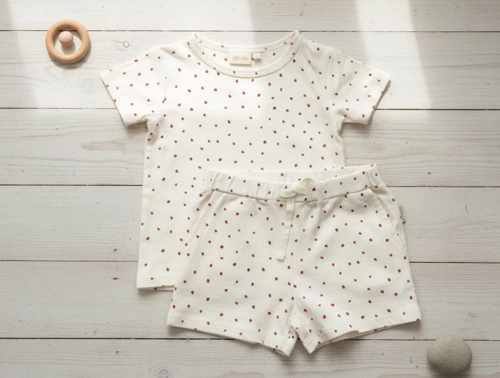 Prikket sæt med t-shirt og shorts i farven bright red fra Petit Piao.