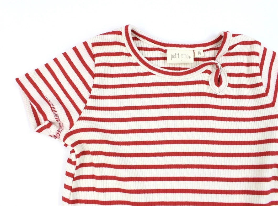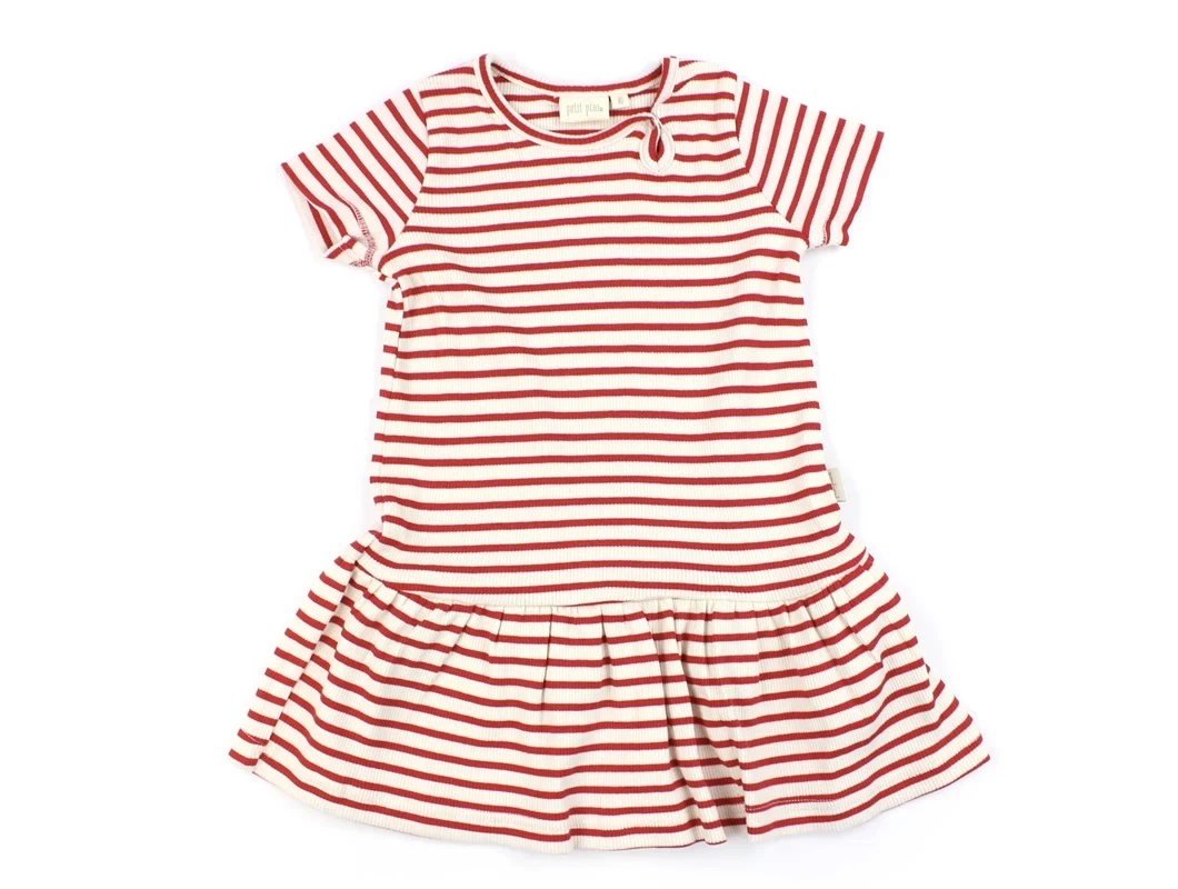 Kortærmet kjole i farven bright red med striber fra Petit Piao.