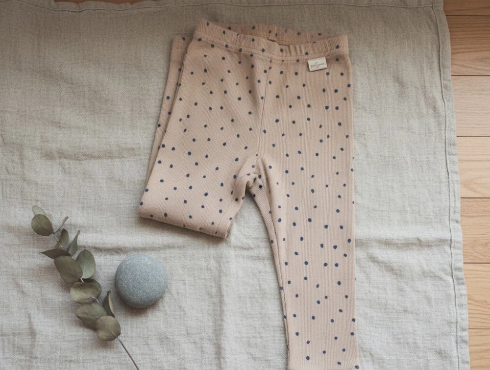 Legging i farven café rose med denim blue prikker fra Petit Piao.