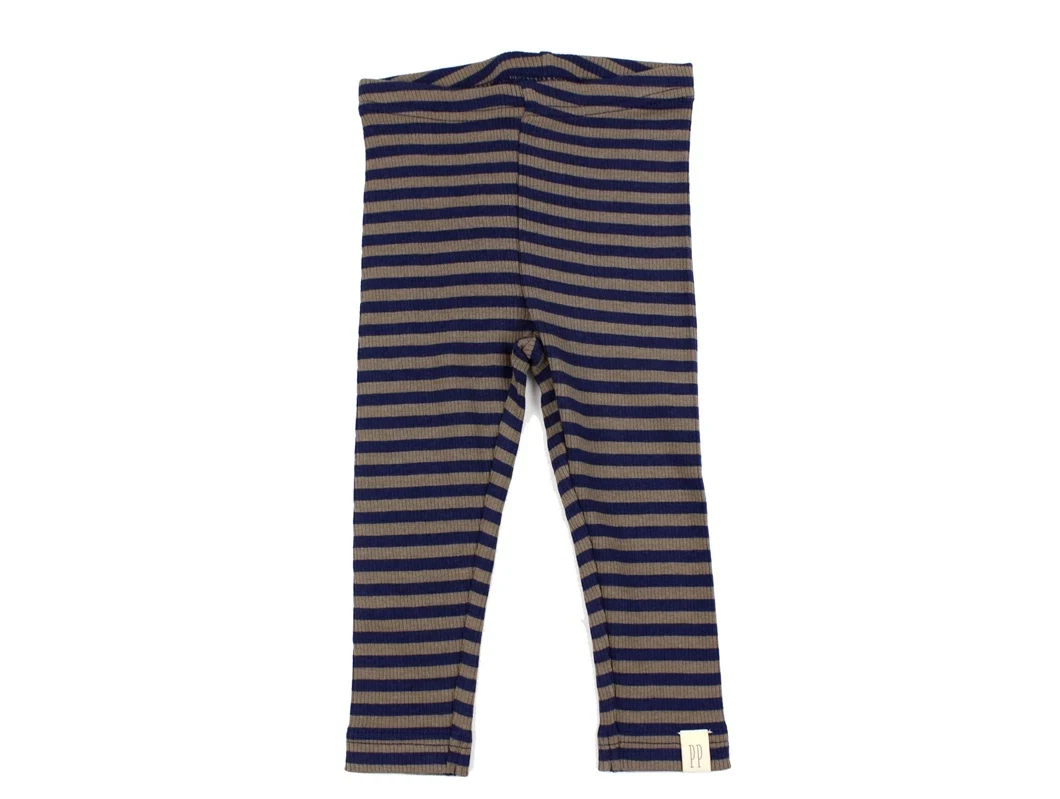 Stribede legging i farverne chocolate brown og indigo plum fra Petit Piao.